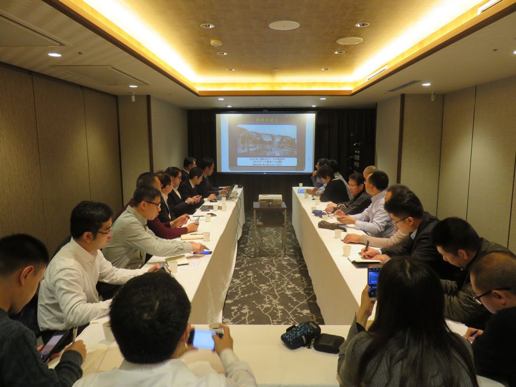 中国の大手建設会社や設計院、ソフト開発会社が来日して、中国と日本の橋梁技術に関する交流会を開催しました。翌日は橋梁メーカーの工場見学と現場見学を行いました。